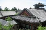 中國古建筑的精髓 一、屋頂 屋頂最上方為一條橫向的屋脊,稱為正脊. 較大的殿宇的正脊兩端有鴟吻(鴟尾、龍吻). 垂(斜)脊的外端(檐角一端)排列著一系列脊飾,最外面是若干個小動物稱為蹲獸,最后面龍頭狀的,稱為垂獸。 中國古代建筑的屋頂可分為廡殿式頂、歇山式頂、懸山式頂、硬山式頂、攢尖式頂和錄頂?shù)刃问健0次蓍艿膶訑?shù)分,廡殿頂、歇山頂和攢尖頂又分為單檐和重檐兩種。歇山式、懸山式和硬山式又分出一種沒有正脊的卷棚式屋頂。此外,歇山式還分出一種極少見的十字歇山頂。 1、廡殿頂 廡殿頂 又稱四阿頂,五脊四坡式,又叫五脊頂。前后兩坡相交處是正脊,左右兩坡有四條垂脊,分別交于正脊的一端。廡殿頂分為單檐和重檐兩種,重檐廡殿頂,是在廡殿頂之下,又有短檐,四角各有一條短垂脊,共九脊。現(xiàn)存的古建筑物中,如太和殿和曲阜孔廟大成殿。重檐廡殿頂是清代所有殿頂中最高等級,只有皇帝和孔子的殿堂可以使用。 ▲圖為重檐廡殿頂宮殿建筑 2、歇山頂 歇山頂又稱九脊頂,除一條正脊、四條垂脊外,還有四條戧脊。正脊的前后兩坡是整坡,左右兩坡是半坡。歇山頂主要分為單檐和重檐兩種,重檐歇山頂?shù)牡诙芘c廡殿頂?shù)牡诙芑鞠嗤T诘燃壣蟽H